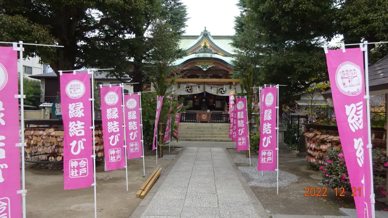 七福神では福禄寿を祀っていますが、なぜか参拝者・観光客が女性ばかりでした。するとピンク色ののぼり旗を見ると大きく「縁結び」と有りました。納得です。