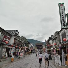 境内の入口である仁王門から山門までの参道沿い250mほどに飲食店や土産屋などが並んでいます。昔ながらの土産物屋とおしゃれなスイーツが混じっていてとても賑やかです。石畳となっているので雰囲気もよし。テンション上がります。普段食べないソフトクリームもついつい買ってしまいました。