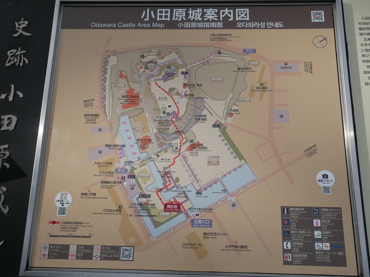 北条氏の居城、豊臣秀吉を除けば、上杉も含めて数々の難敵をげきたいした難攻不落の名城です。が、天守閣とその付近は、結構普通のお城の感じ(町全体がお城になっていたそうですから、天守などが大きくある必要はなかったんでしょうね)、それでも、上に上がれば海まで見渡せる立派なお城です。内部の展示も映像を含めて、分かりやすかったです。