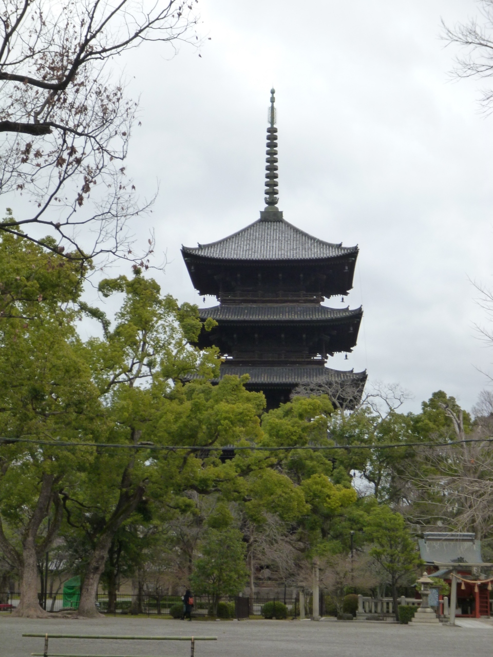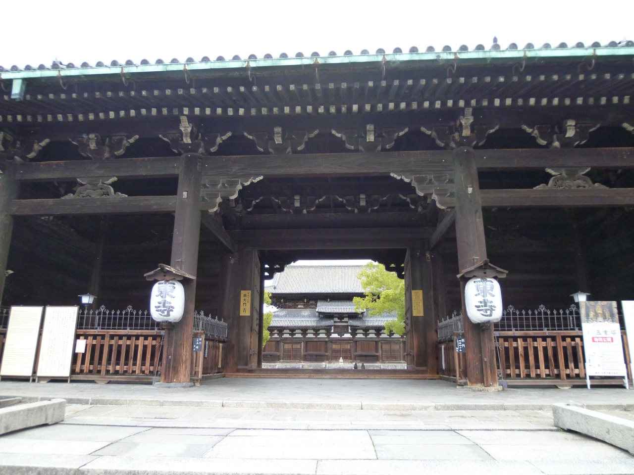 今回南大門から東寺を参拝しました。南大門は東寺の正門にあたる門です。現在の南大門は三十三間堂にあった西門を明治28年(1895年)東寺に移築されたものだそうです。かつての南大門には、運慶と湛慶の作と伝わる仁王像が祀られていましたが、明治元年の火事で焼失しています。残念なことです。今回も五重塔を見学するために訪れました。高さ55メートルの五重塔は日本最高の高さを誇り、近くでみると迫力があって圧巻でした。