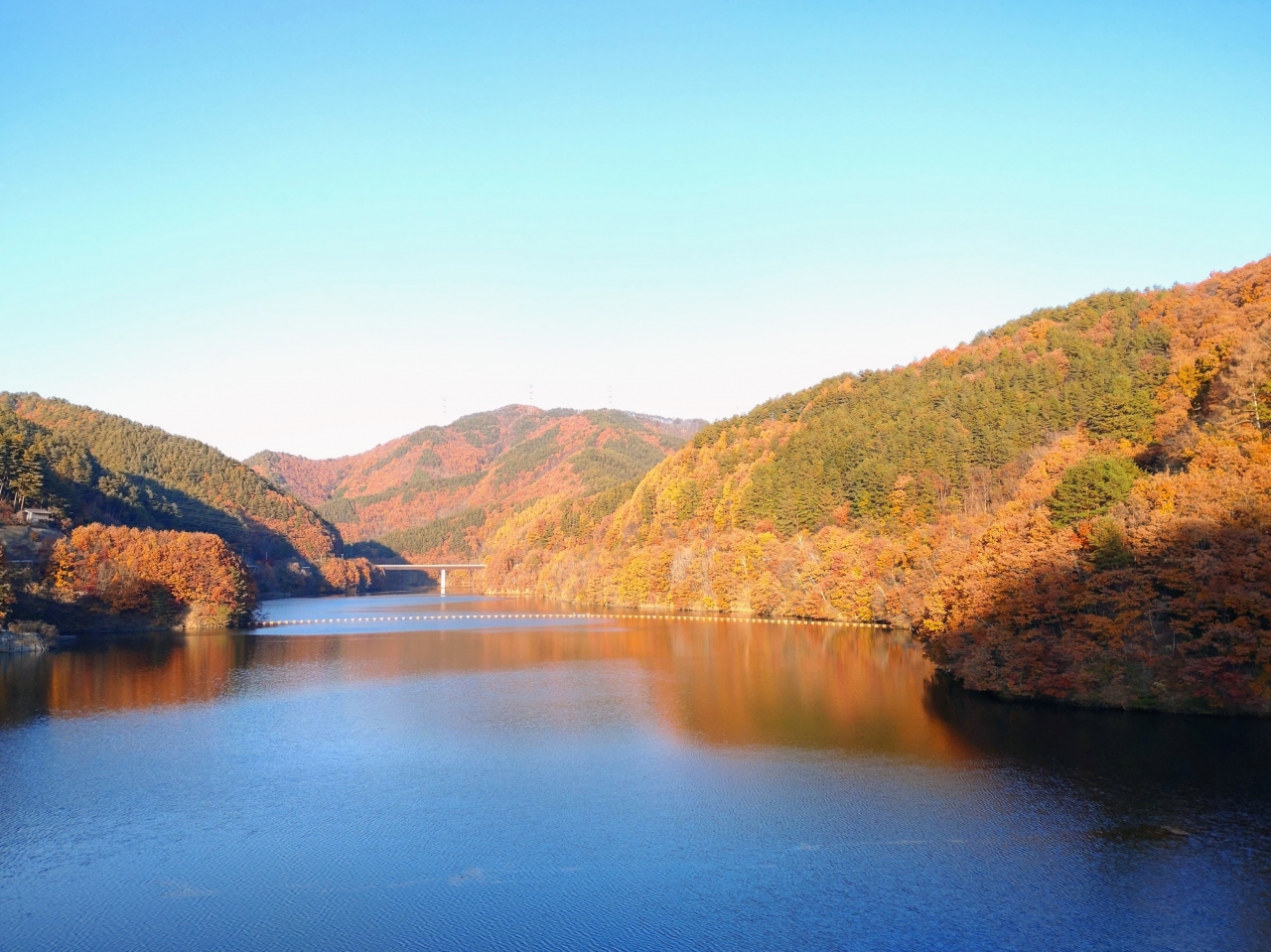 紅葉の時期に行ったため、山々がとてもきれいに色づいておりダム湖に映りこんだ山の色合いもとてもきれいでした。