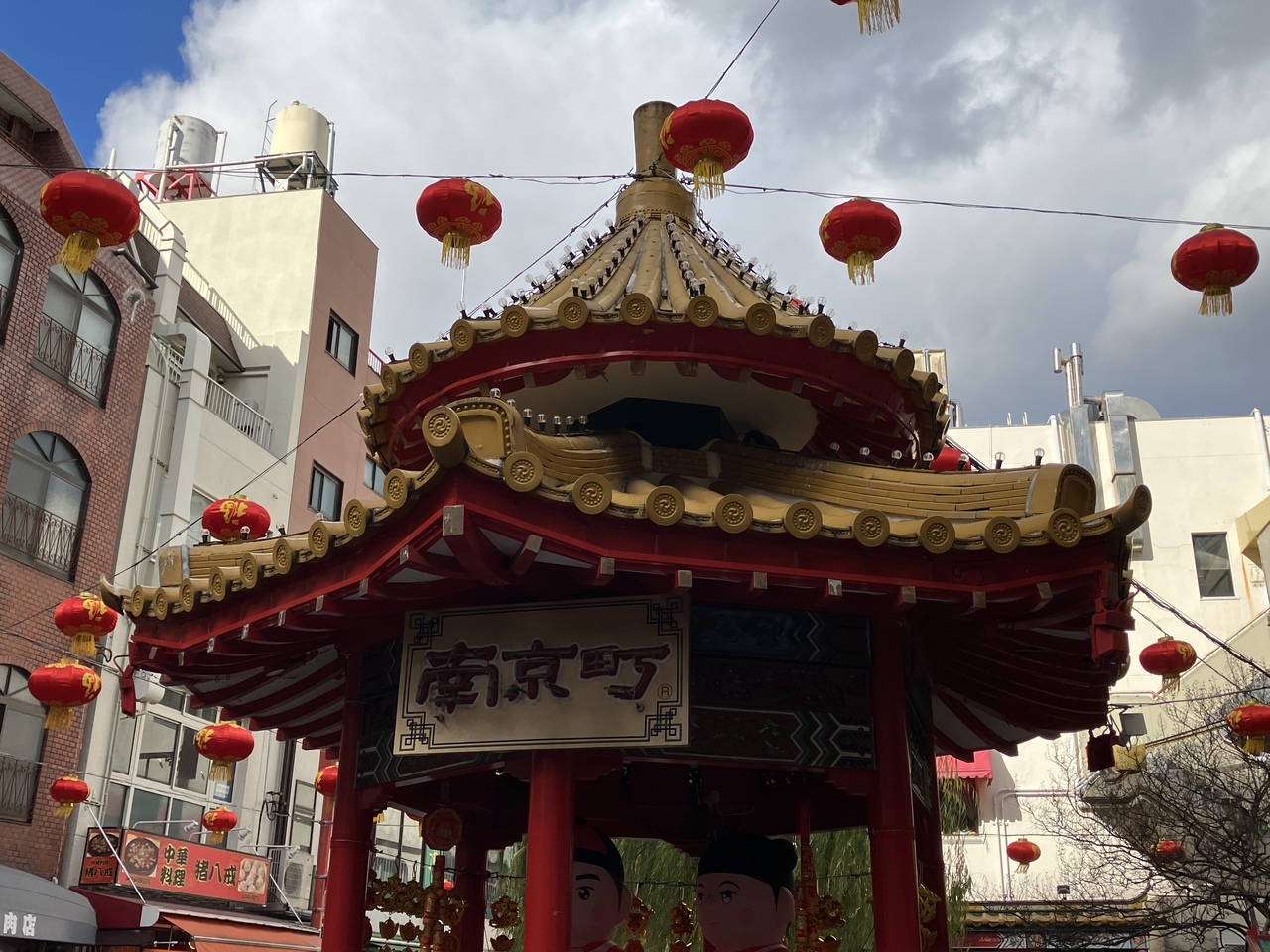 神戸のチャイナタウンである南京町の中心、南京町広場に設置されたあづまやです。12月に訪れたので、南京町はランターンフェアが開催されていて、広場のあづまやにも沢山の提灯が明かりを灯していて写真スポットになっていました。