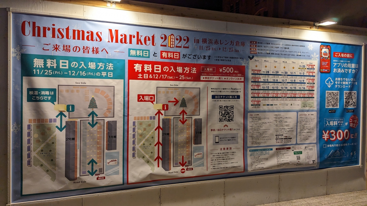 土日とクリスマスの前一週間の17日~25日は有料で、平日は無料です。