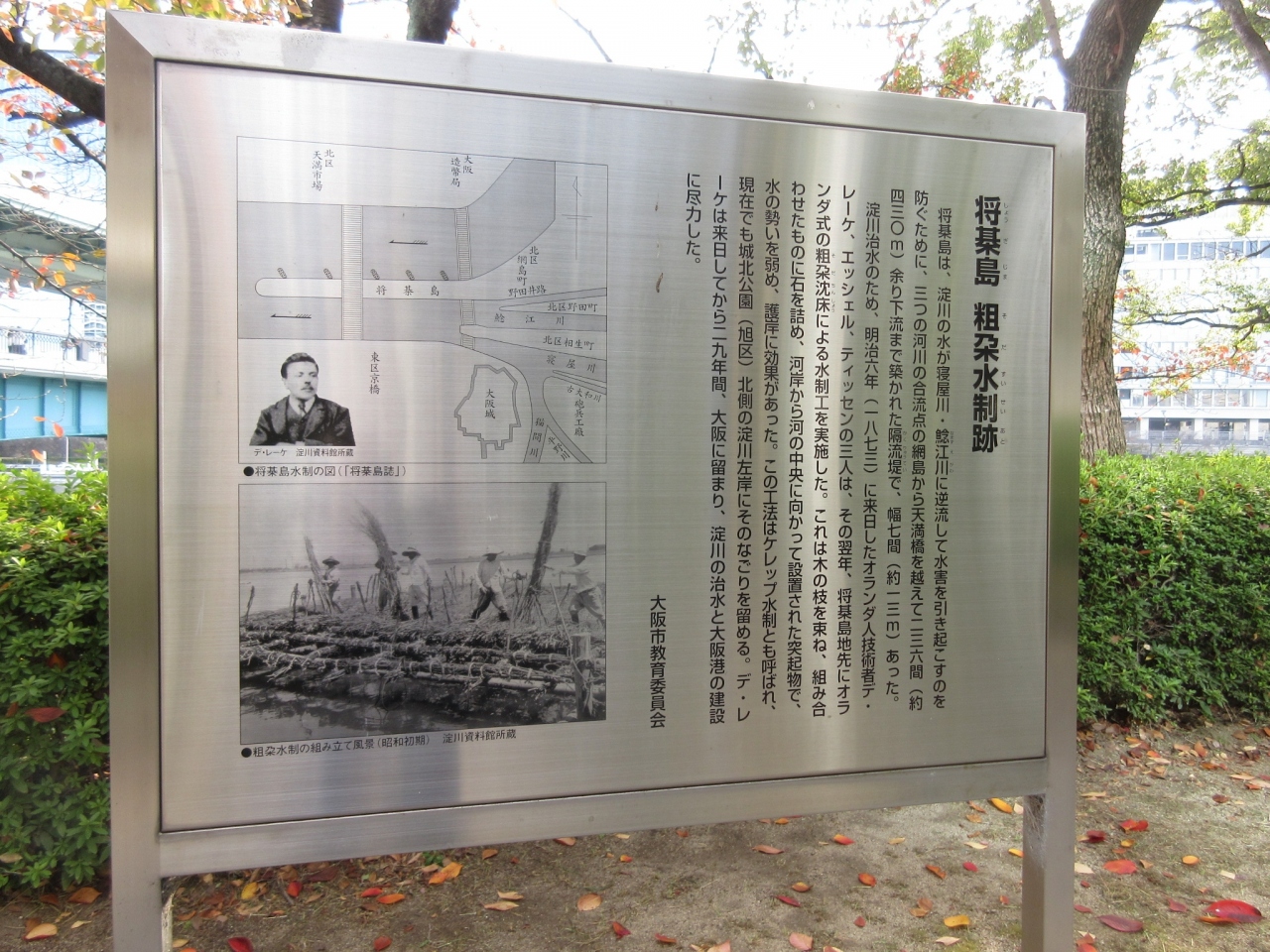 「将基島」は、淀川の水が寝屋川・鯰江川に逆流して水害を引き起こすのを防ぐために造られた「隔流堤」で、明治7年(1874年)に築かれたそうです。