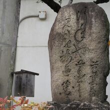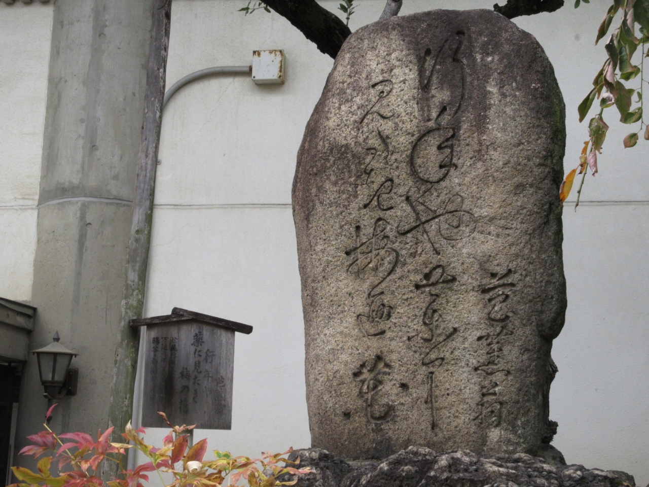 梅の名所である天満宮、ということからなのか、句碑には「行年や 薬に見たき 梅の花」と刻まれています。
