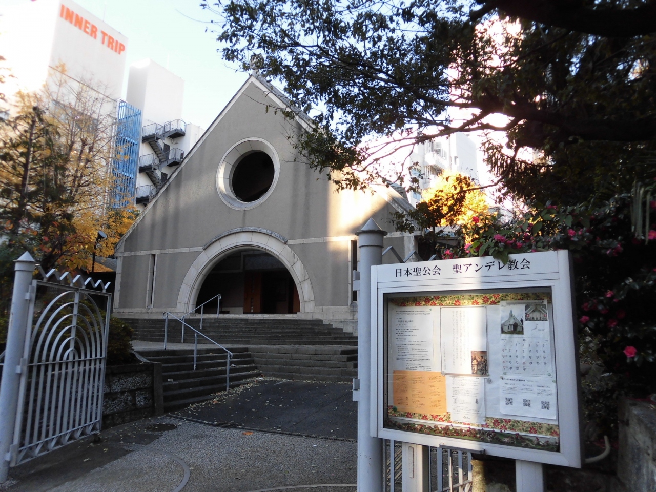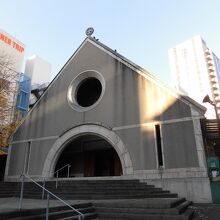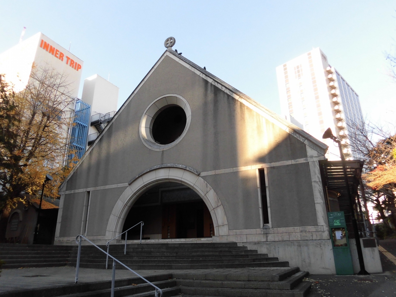 港区の飯倉から東京タワー方向に向かっているときに、教会があったので立ち寄ってみました。日本聖公会の教会で、建物はコンクリート製ですが、デザインが丸い窓に半円の入口になっていて、いかにも教会だという雰囲気を感じました。