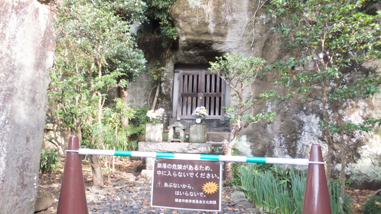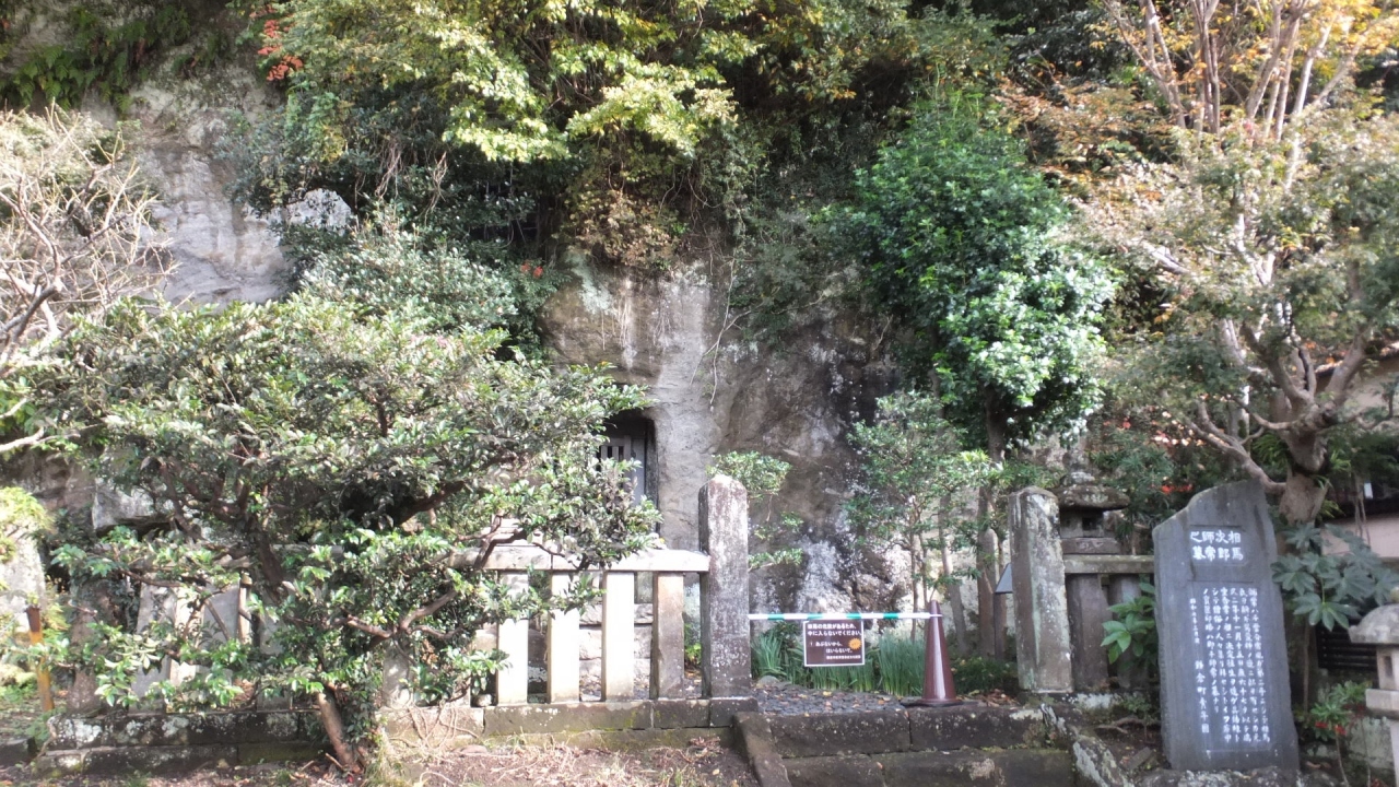 11月の紅葉時期の鎌倉散策で訪問した場所です。今まで近くまでは来ていたものの、気づかずに通り過ぎていた住宅の細い道を進んだあたりにありましたので、今回初訪問です。岩にめり込んだようなお墓で、中には入ることはできませんが、案内板や石碑もありますし、石碑と全体の雰囲気が十分立派で行ってみてよかったです。