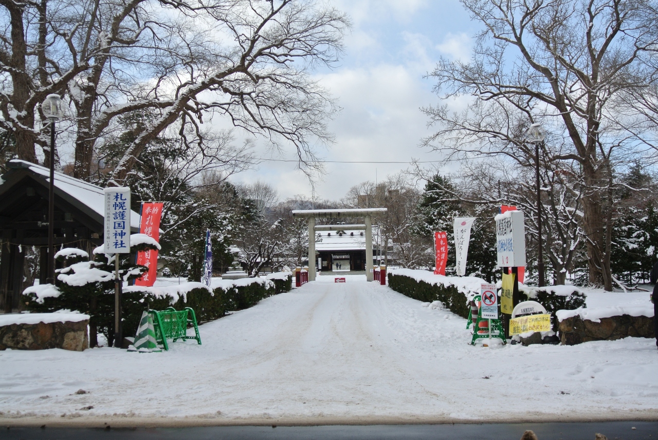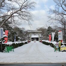 かなり広い境内の神社です。たた、一面雪が積もっていたのでどこからどこまでが神社なのか、いまいちわかりませんでしたが。回廊を持つ立派な社殿です。社務所は社殿・回廊のところにはなく、少し離れたとこにありました。