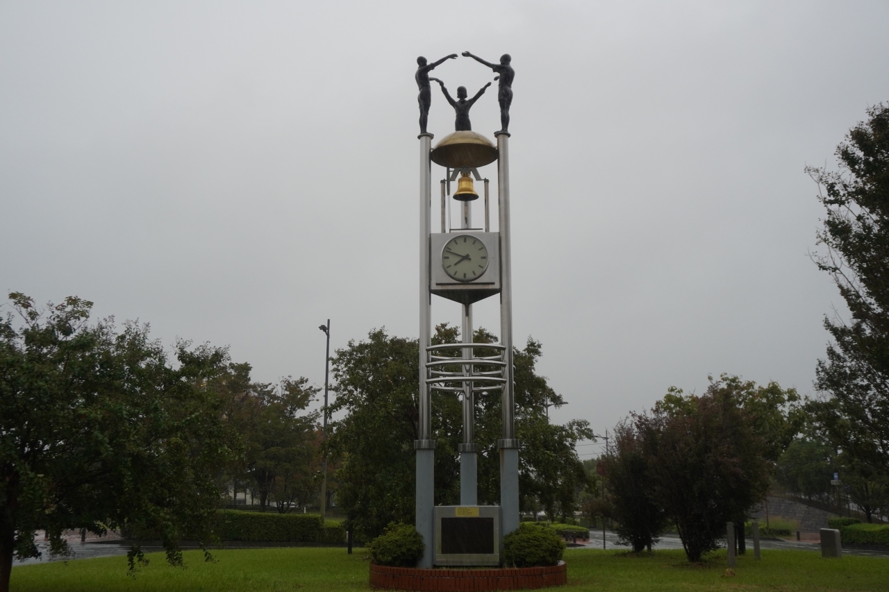平和の鐘は、鳥栖駅前の反対側。駅前不動産スタジアムに隣接する広場にあります。
