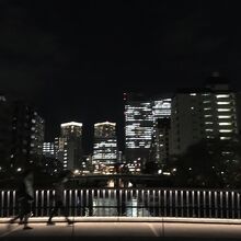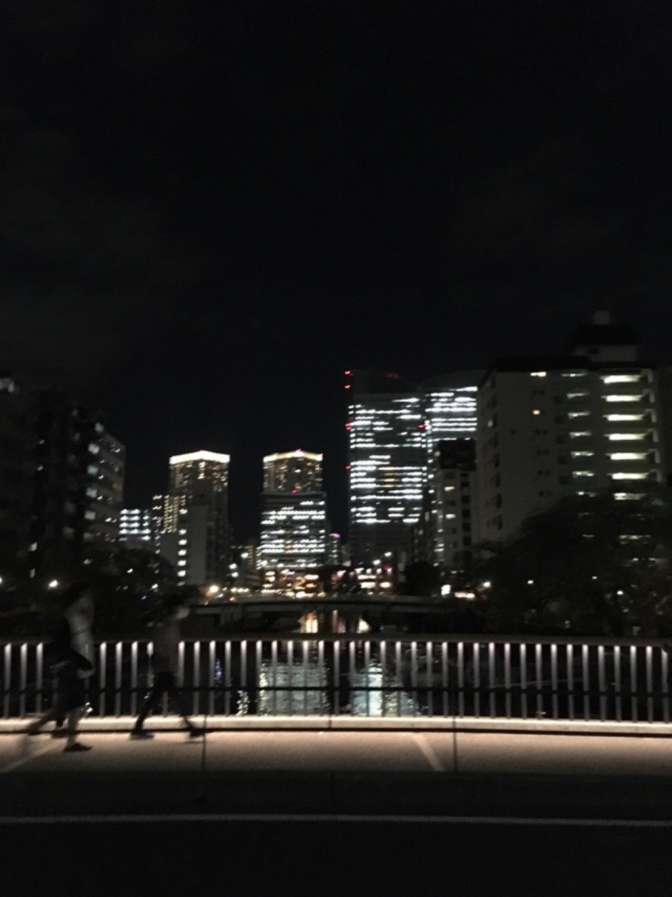 東京都を流れている広くて大きな川です。橋もいくつかかかっていました。夜はランニングをしている人がいました。築地で、もんじゃ焼きやお好み焼きなどを食べてから散策したので、ちょうど良い腹ごなしになりました。