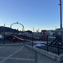 鬼怒川温泉駅を出て左手にあります。夜に到着したのですが、きれいに電飾がつけられていて目を引きました。実際にSLがのせられて使われることがあるそうで、時間もかかれていました。無料で気軽に見ることができるので、時間があるときに見てみてもいいかもしれません。