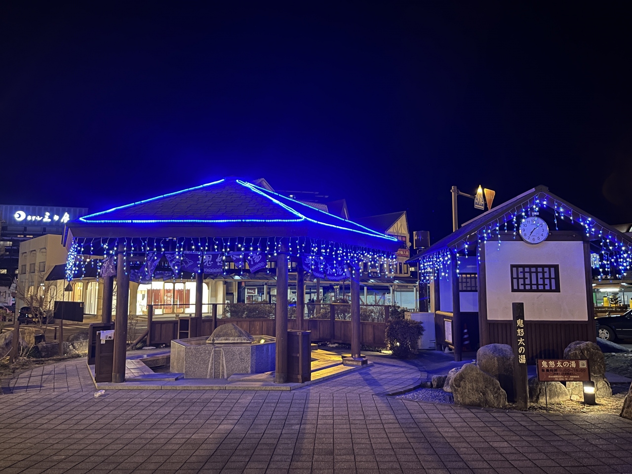 鬼怒川温泉駅を出て正面に「鬼怒太」のモニュメントがあり、そこから少し離れたところに足湯がありました。手を少し浸してみましたが、稼働時間が過ぎており、ぬるめのお湯でした。無料で利用しやすい場所にあるので、電車の待ち時間などに利用しやすいと思います。