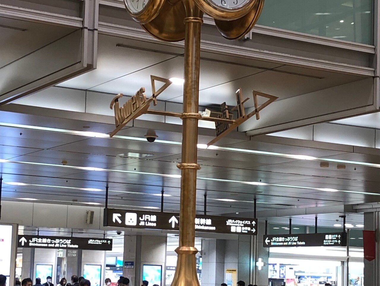 時計台です。時計台の脚部にJRタワーJRゲートタワーの方角がわかるように矢印で方向が示されています。