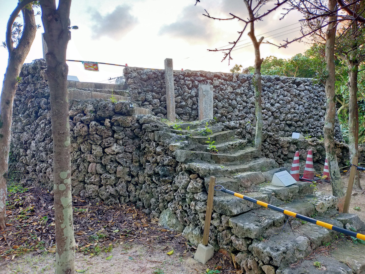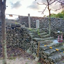 世持御獄の北側にあり、珊瑚石を積み上げた城跡のようなところです。調べてみると昔の狼煙跡でした。岩が崩れかかっているためか、上には上がれませんでしたので、狼煙台はわかりませんでした。結構な規模感のある構築物です。