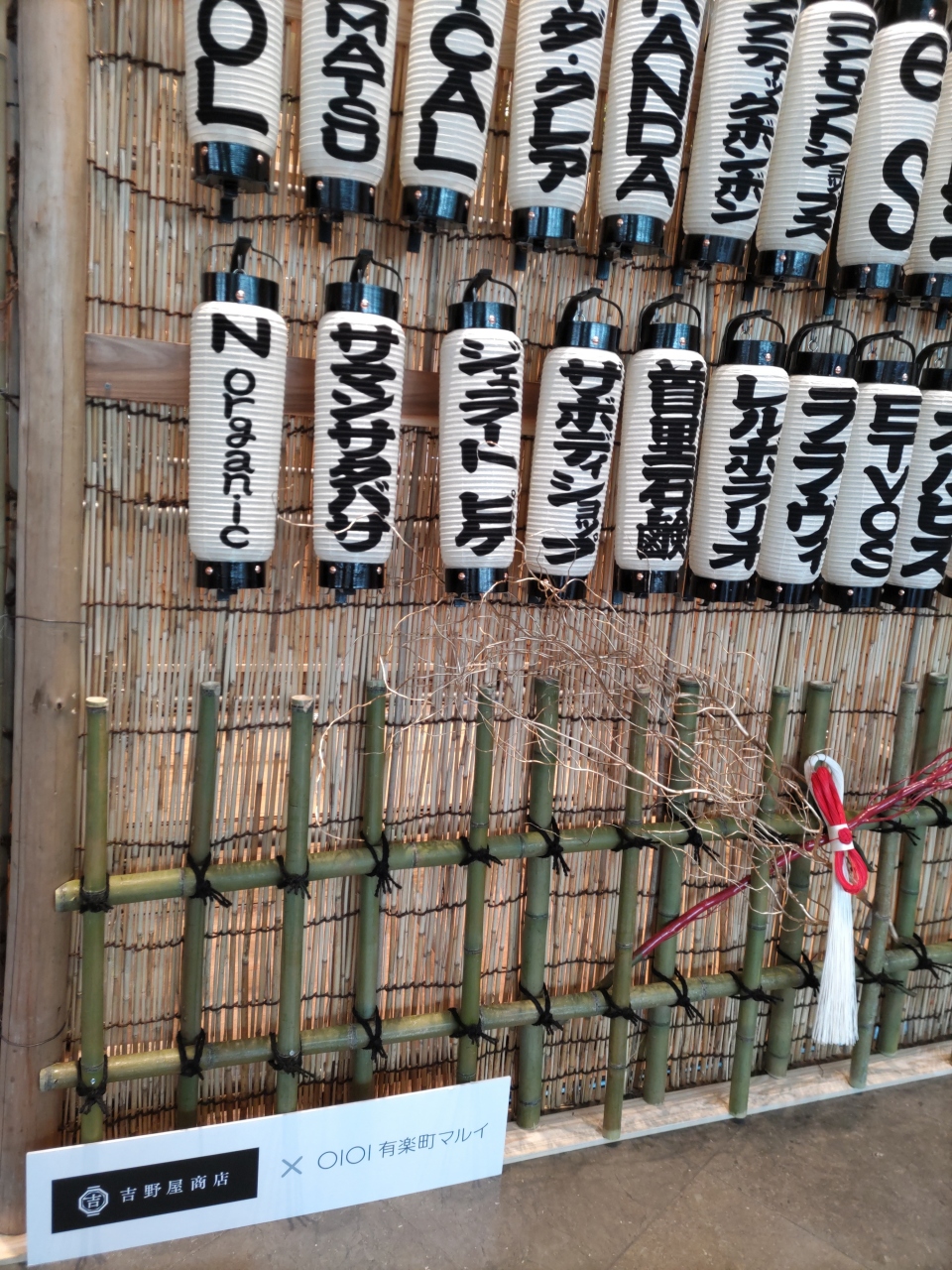 有楽町の駅のすぐそばで便利な立地。1Fの正面入り口からはいるとたくさんの提灯がおかれていて、年末だったので、年始に向けても正月飾りの一環のようでした。ただ年始は丸井といえば初売りセールでしたが、今年は1/4からの営業です。