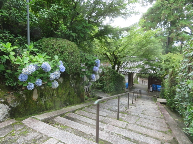 円山公園の東側にあります。山門まで結構階段があり、山門をくぐるとまだ階段があります。この階段に咲いている青いアジサイがとても綺麗でした。本堂は落ち着いた佇まいで、そのそばにおられる何体かのお地蔵様が神聖な雰囲気でした。