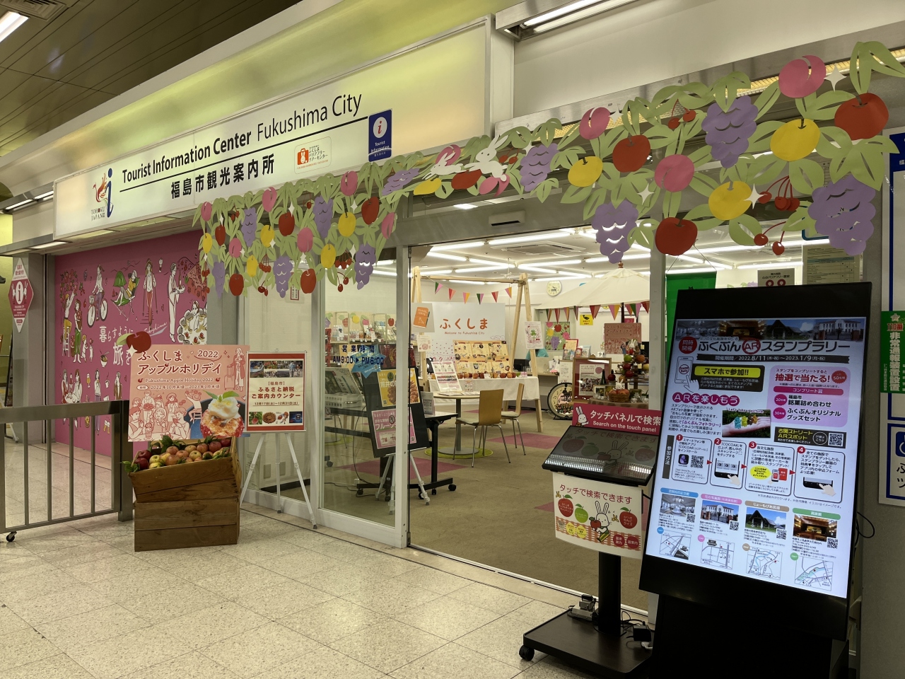 福島駅の西口の改札を出たところにある観光案内所です。広々としていて、パンフレットなどが置かれているほか、グッズなども見られるようになっていました。東口に出てしまうと遠回りになるので、鉄道で福島に到着して観光案内所を利用するなら西口から出たほうが便利だと思います。