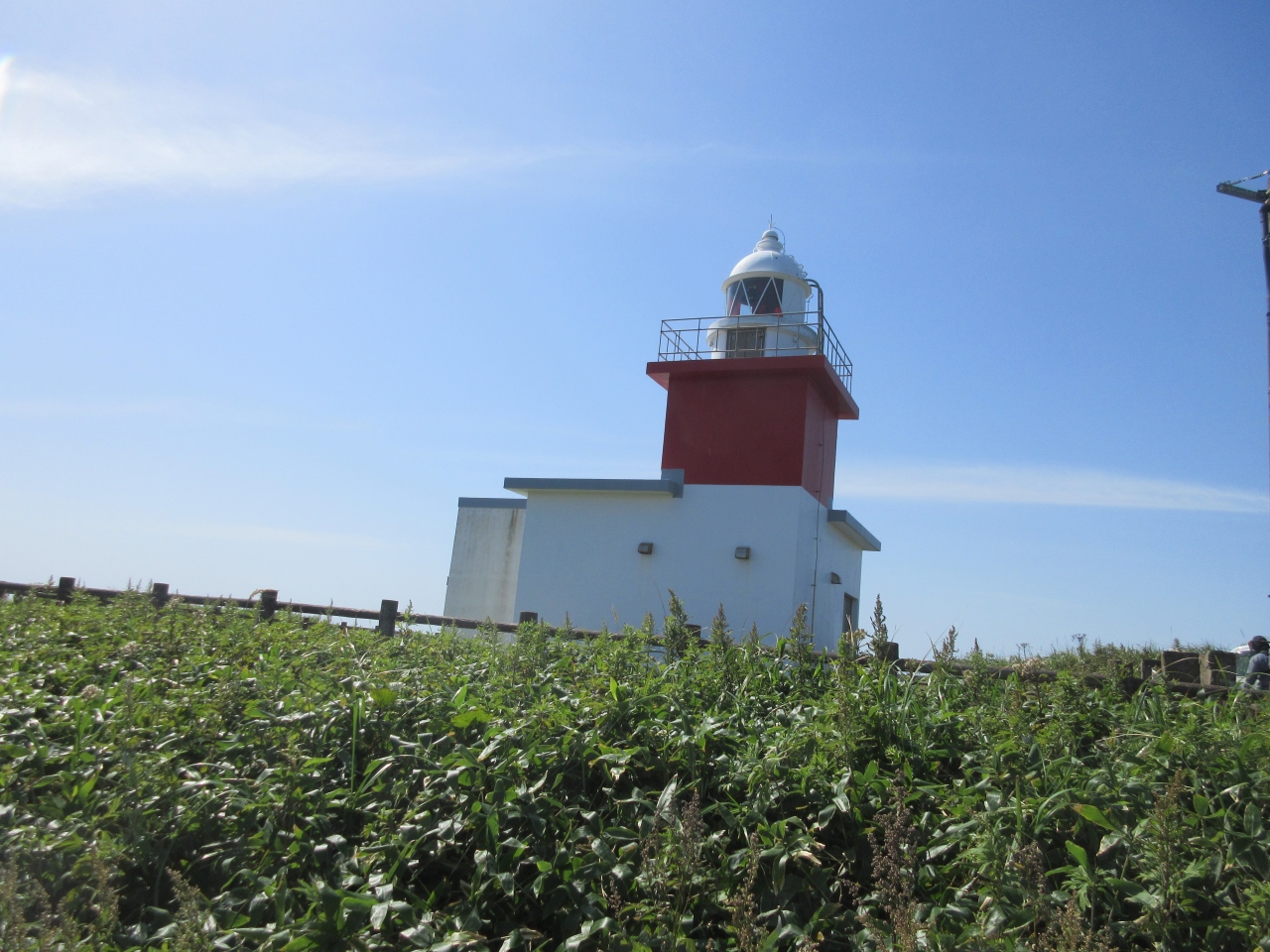 灯台のイメージは白くて円形の高い建物でしたが、こちらの灯台はちんまりとして、間に赤い色が入って可愛らしい感じです。