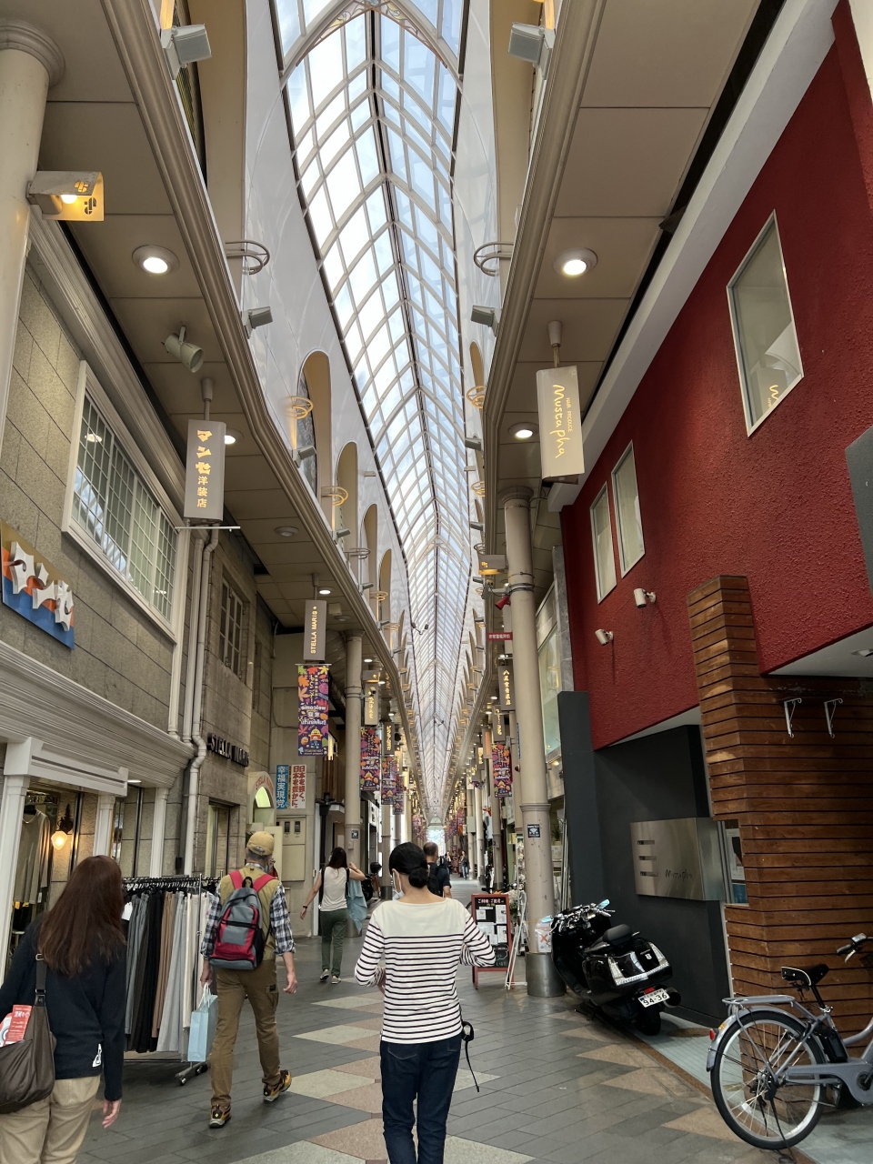 大手筋商店街の途中から南に延びているアーケード商店街で、大手筋商店街よりも通路が狭く、「パサージュナヤマチ」という名前をつけているのもなんとなくうなずけます。お店は飲食店のほかには地元の人向けのお店が多いかなという印象でした。