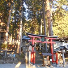 旧本殿であった富士社という建物は朱塗りの社殿に白漆喰や色彩彫刻が華をそえている。平成7年に修理をしたそうで、塗りたてではない落ち着いた色調になっていていい感じでした。
