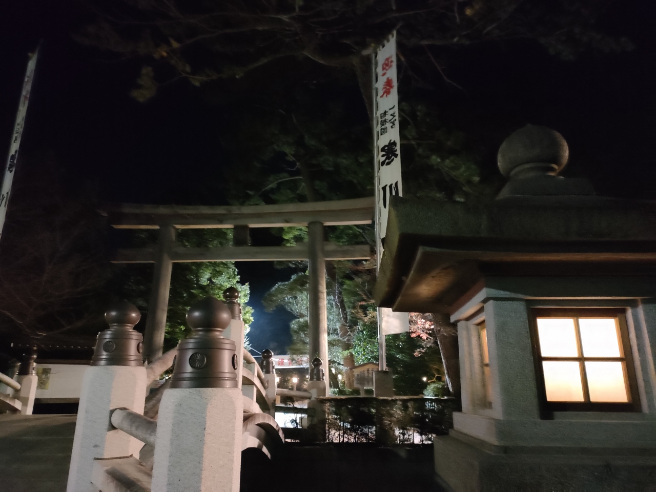 毎年、寒川神社では年末から翌2月くらいにかけて、神社境内の本殿前の神門に迎春ねぶたが掲げられ、無料で誰でも見られるようになっています。