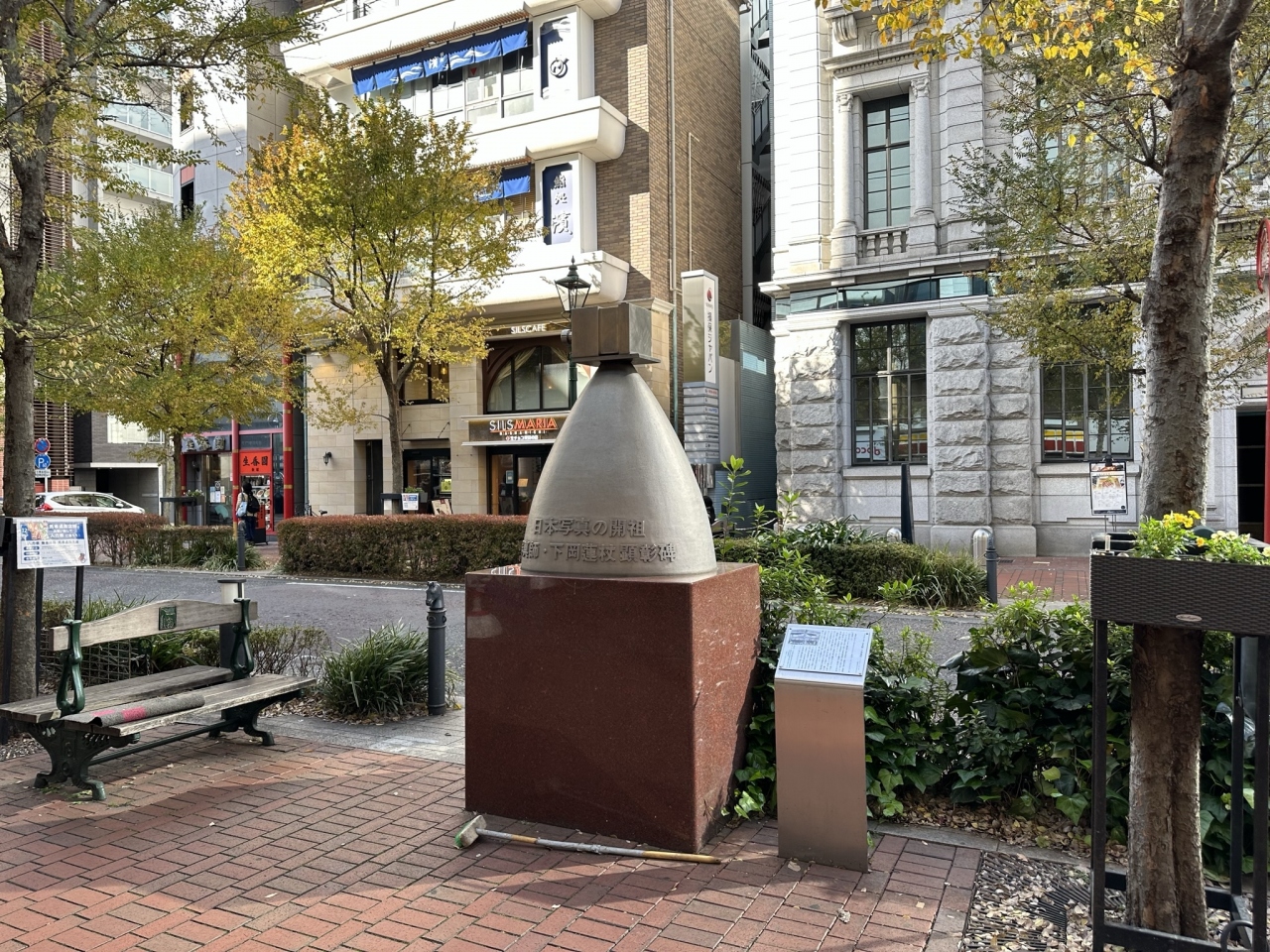 JR関内駅北口から歩いて7分のところ、馬車道にあるデイリーヤマザキの店舗前に、日本写真の開祖・下村蓮杖の顕彰碑があります。