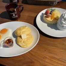 お目当てのパンケーキは、ふわっふわで生クリームも甘すぎず美味しくて何枚でも食べれそうです。若いスタッフさんの対応も好感が持て、いい雰囲気の中ゆったりと寛げました。