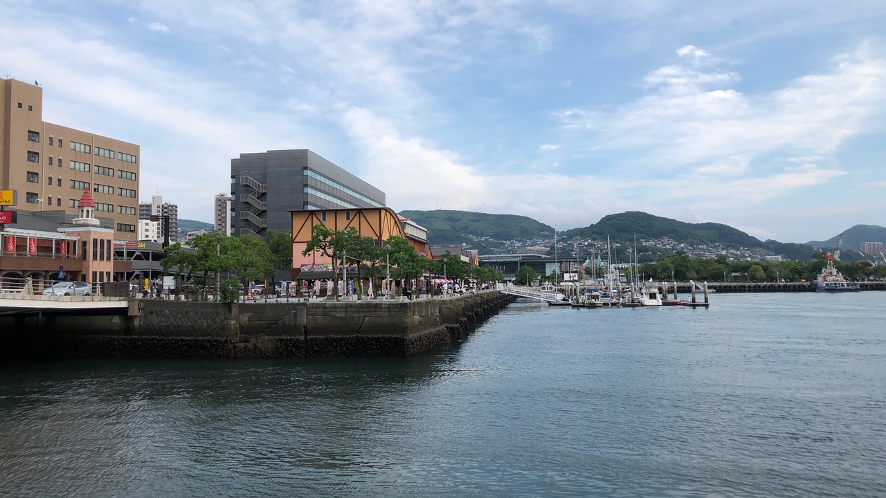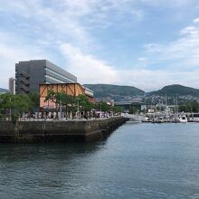 長崎港にある商業施設です。離島への長崎港ターミナルの近くです。長屋のような2階建ての施設に、飲食店などが入っています。各店、テラス席もあるので、海を見ながら飲食できます。海沿いにある商業施設だからか、海鮮レストランが賑わっていました。