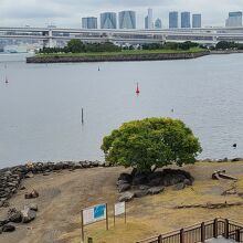 まぁ、視線を揚げるとゆりかもめのレールの向こうに大きなビル群がありますが^^;芝生ゾーンもあり木々も植栽されているのでお散歩に丁度良い感じです。