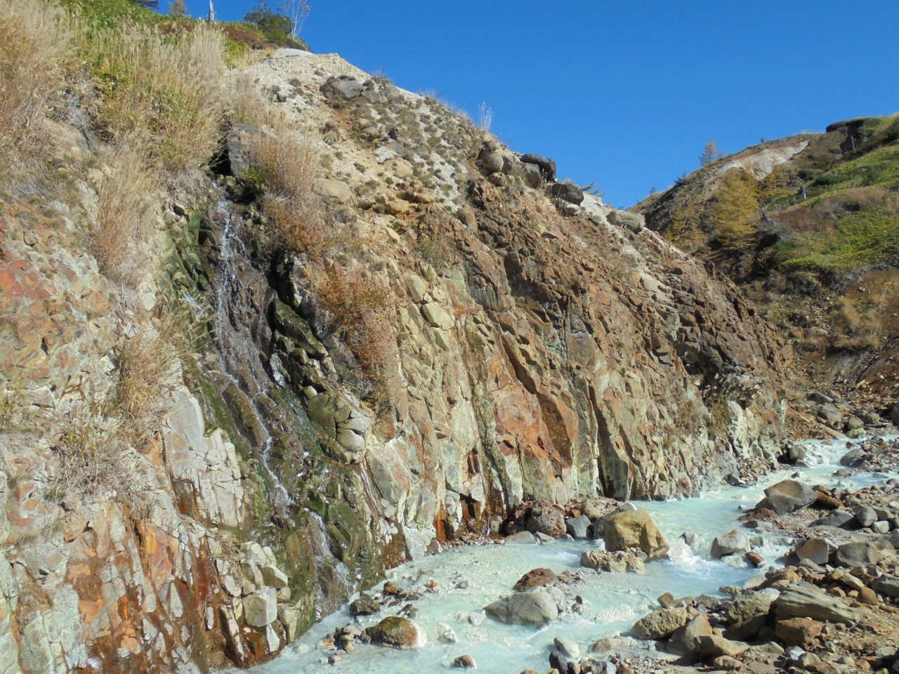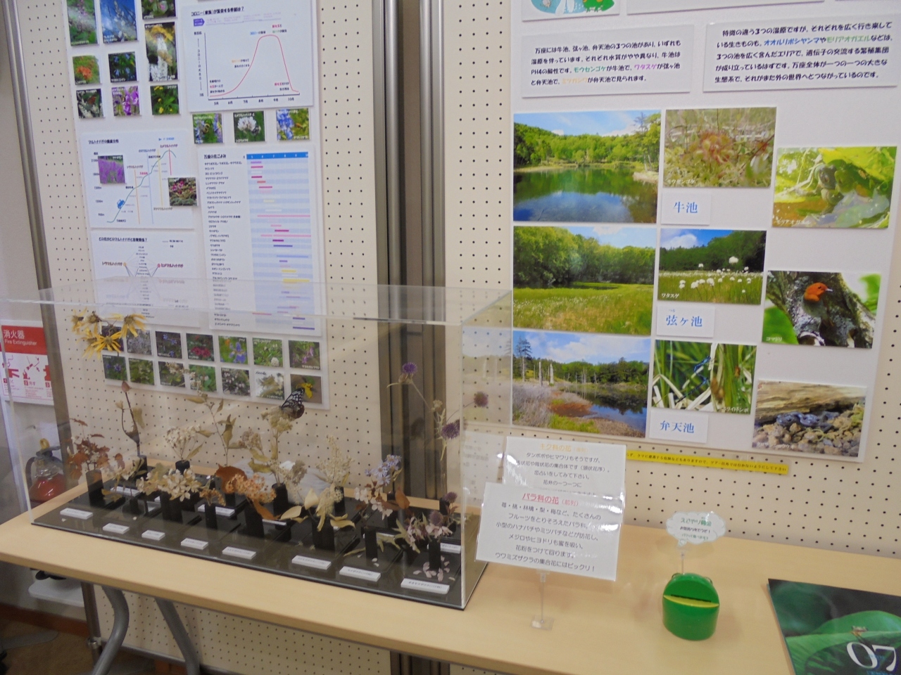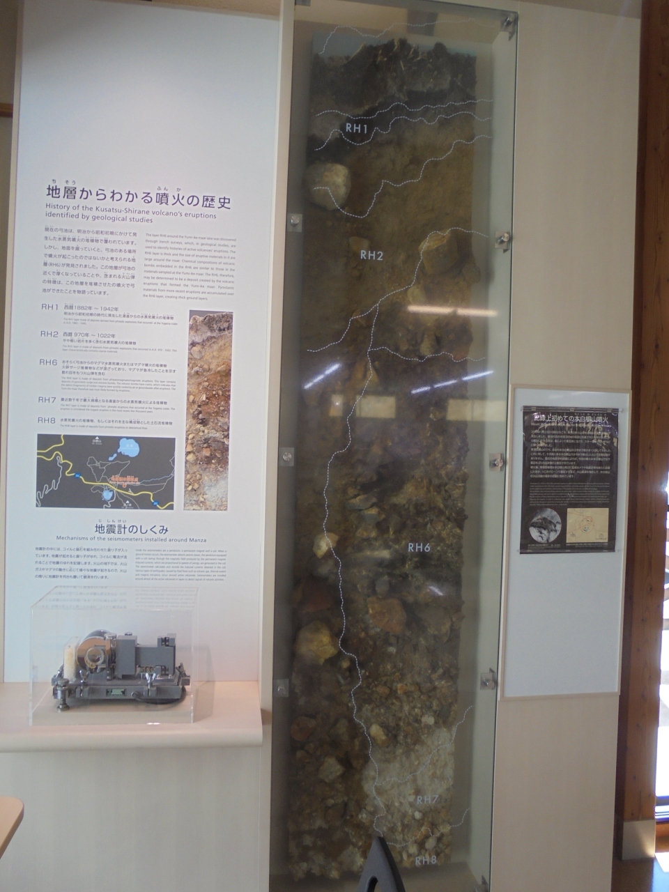 横手山を通過し、一部有料道路を通って万座温泉のこの施設へ。周囲には白い噴煙があがる斜面や硫黄の臭いがする場所もあります。情報館の入館料は無料。このあたりの動植物や火山を含む地理が詳しく説明されています。展示には工夫がされていて、とてもわかりやすくなっています。子どもたちの遠足や校外学習に最適な施設です。