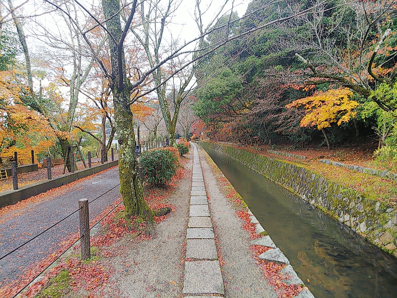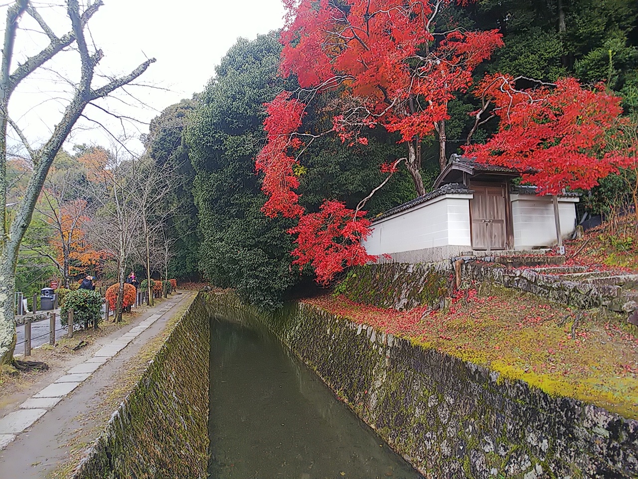 蹴上インクライン、南禅寺、東山高校を経由して哲学の道に歩いていきました。12月の初めにしては暑い日でした。紅葉も終わりごろで、もう少し早ければ良かったです。でも混んでいなく、平日の午前中だったせいか、会う人もまばらでした。数十年ぶりに歩き、気持ちも安らいだ気持ちになりました。