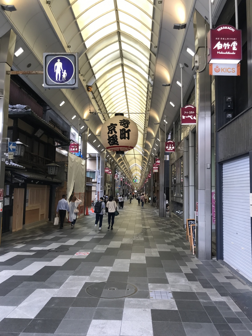 寺町京極商店街は、京都の中心に位置する代表的な商店街です。老舗もあれば、新しい店もあり、新旧共存している商店街です。京阪三条駅から錦市場へ買い物に行く際に訪れました。アーケードがあるので夏の日差しを避けるには丁度都合がいい商店街です。錦市場の後には、錦天満宮へも立ち寄って参拝しました。