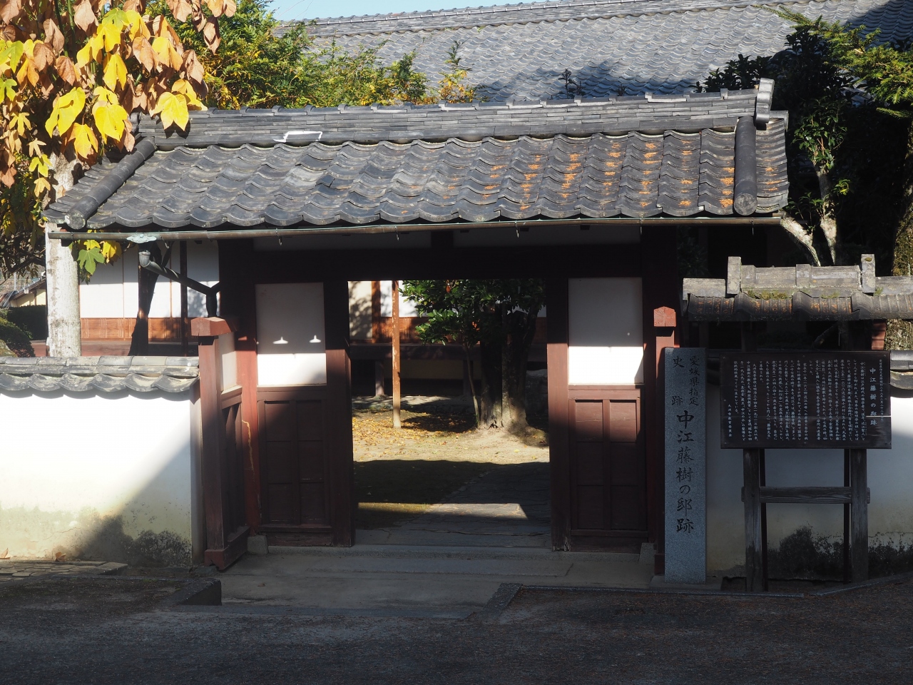 大洲城から南へと10分ほど歩いた県立大洲高校の敷地の中に中江藤樹邸跡があります。中江藤樹は江戸時代初期の儒学者でのちに陽明学者として近江聖人とも呼ばれる人物になる人です。大洲では10歳から20年ほど武士として勤め、住んでいた場所が現在の県立大洲高校の敷地であったので、邸宅などは建物の再現などが行わたものです。中江藤樹というと近江の人のイメージですが、大洲にもゆかりのある人物なのです。