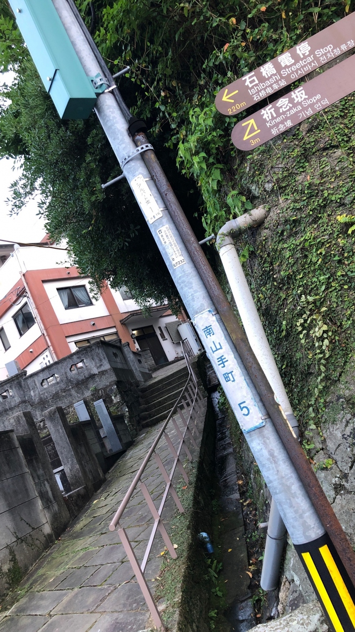 大浦天主堂の周りを散策している時に見つけました。とても細い道です。坂を上がると、小さな大浦展望公園があり、公園からの眺めが良かったです。祈念坂という名前は、大浦天主堂にちなんでいるのかもしれません。映画・テレビでもよく登場するそうです。