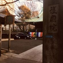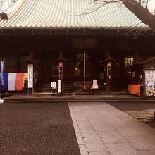 塀に囲まれていて谷中七福神の旗が靡き、正面の本堂は大きく一般の人でも中に入れるようでした。能舞台のような大きな建物が迫力があり、苔が生えた箇所が良い感じでした。交差点の角にあるためか、訪れる人も多かったです。