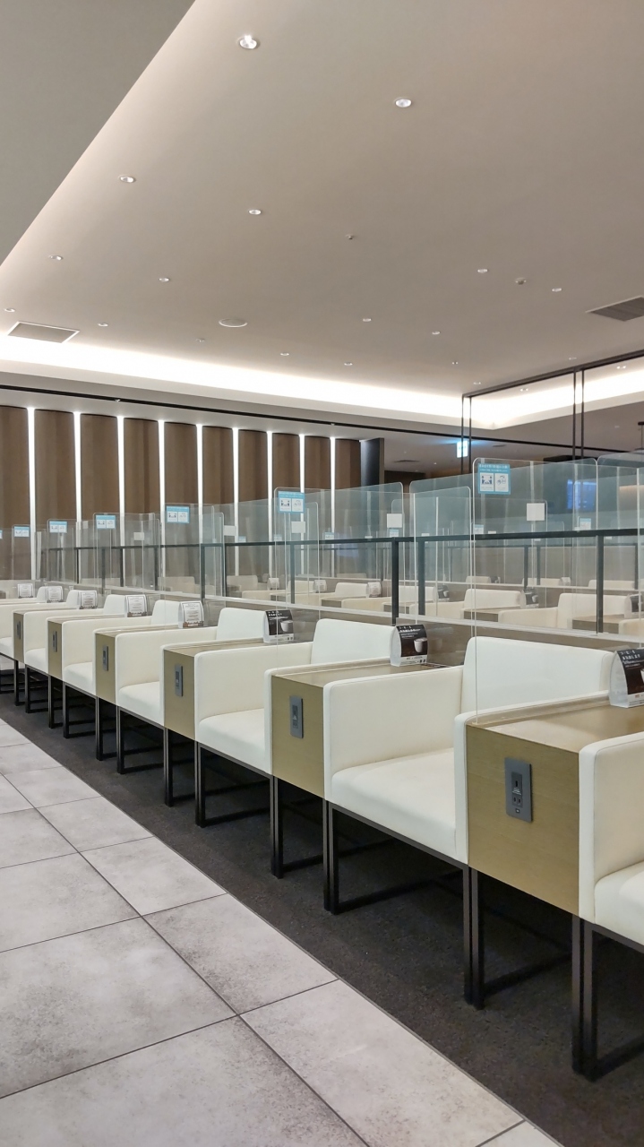 同じようなラウンジが3つ並んでいます。真ん中にあるラウンジを除いて2つはクレジットカード上級会員なら無料でアクセス可能です。珍しく生ビールやハイボールのサーバーにスナック付きで飲み放題、飲み過ぎに注意のラウンジです。また、ラインで友達登録後にポイントがもらえて10スタンプで特典が貰えるサービスまであります