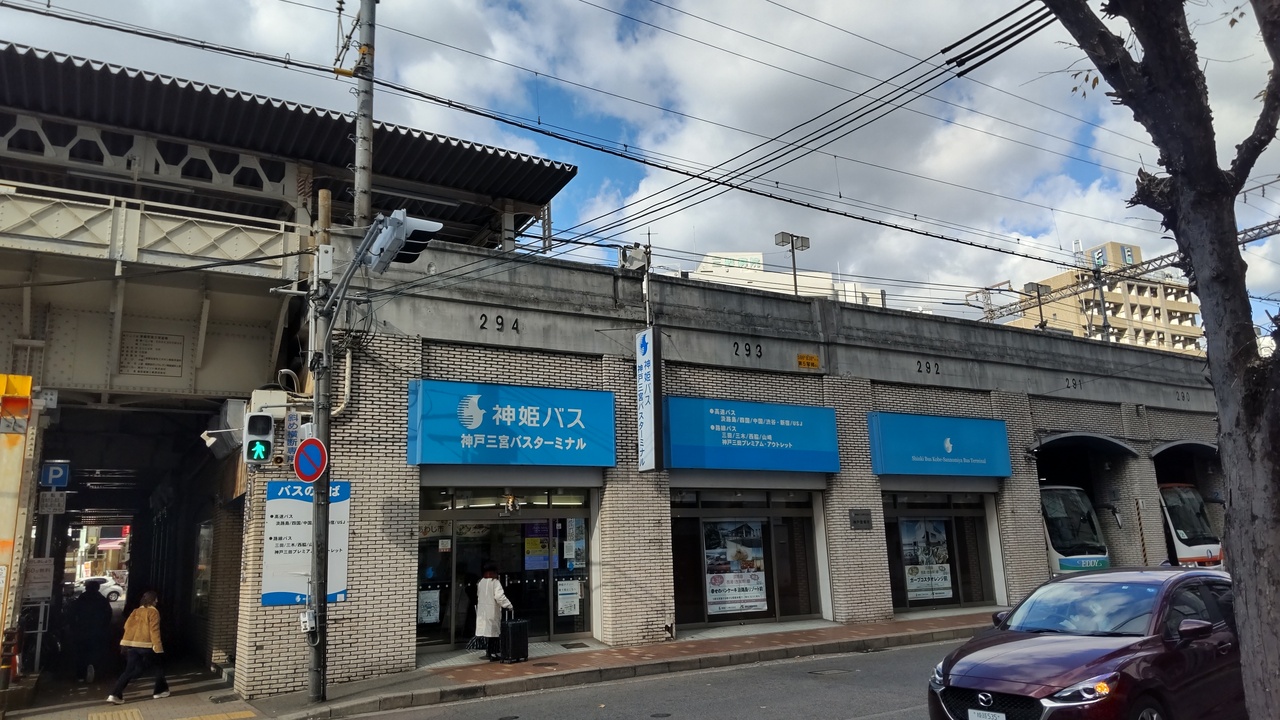 神戸三宮のバスターミナルですが、JR西日本等の長距離高速バスが発着するターミナルと、神姫バスの四国や淡路島に向かうバスターミナルでは場所が違います。神姫バスでは鉄道のガード下を上手く利用したバスターミナルになっていてどちらのバスターミナルなのか事前に調べておかないと乗り遅れる可能性あり。