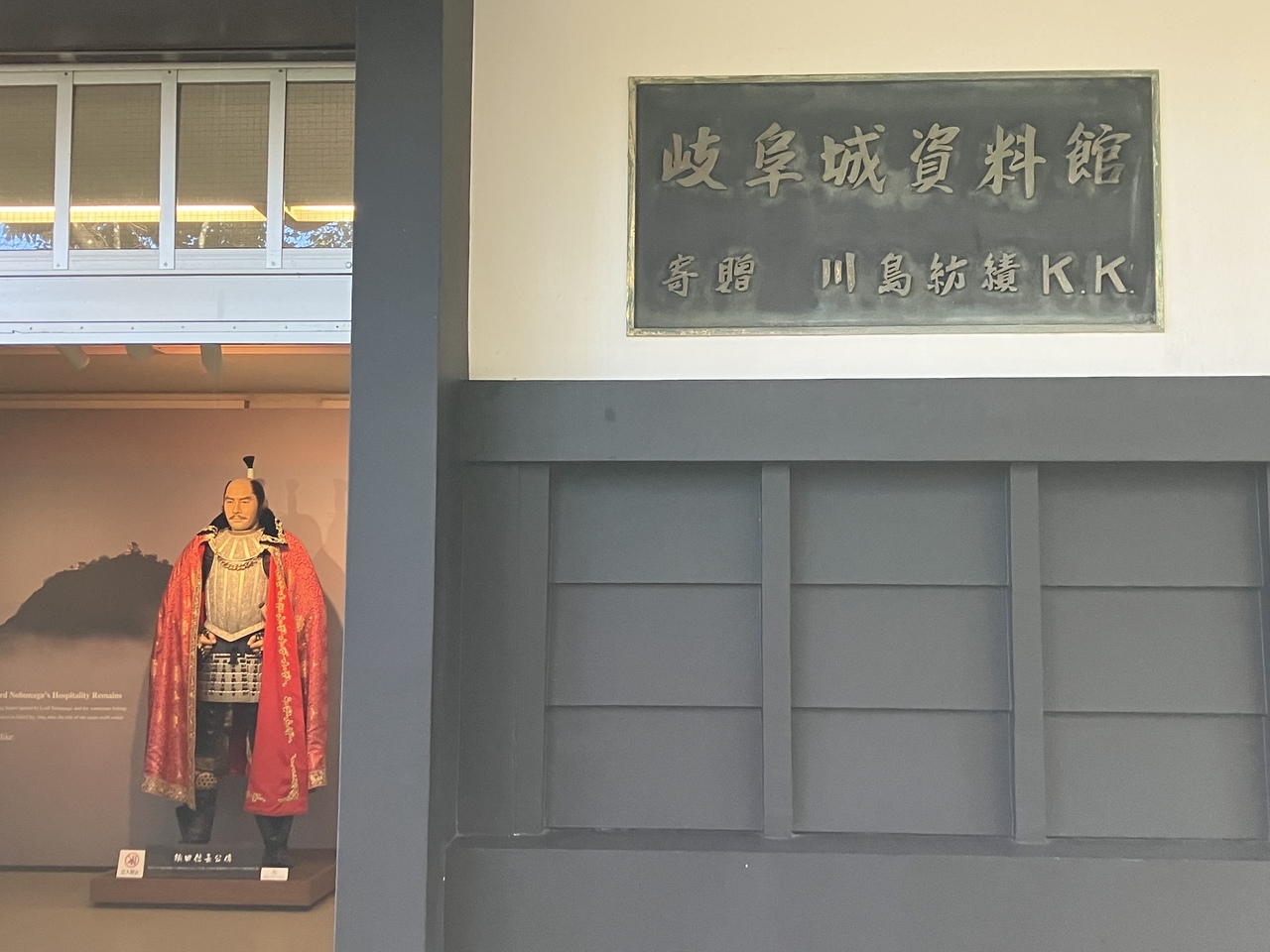 「岐阜城」天守を東へ少し下ったところにあります。当時の食糧・武器庫を隅櫓城郭造りに復元した建物で中を資料館と称して公開していました。NHK大河「麒麟が行く」で斉藤道三役のモッくんの等身大蝋人形が置かれていました。他は特に見るべきものはありませんでした。