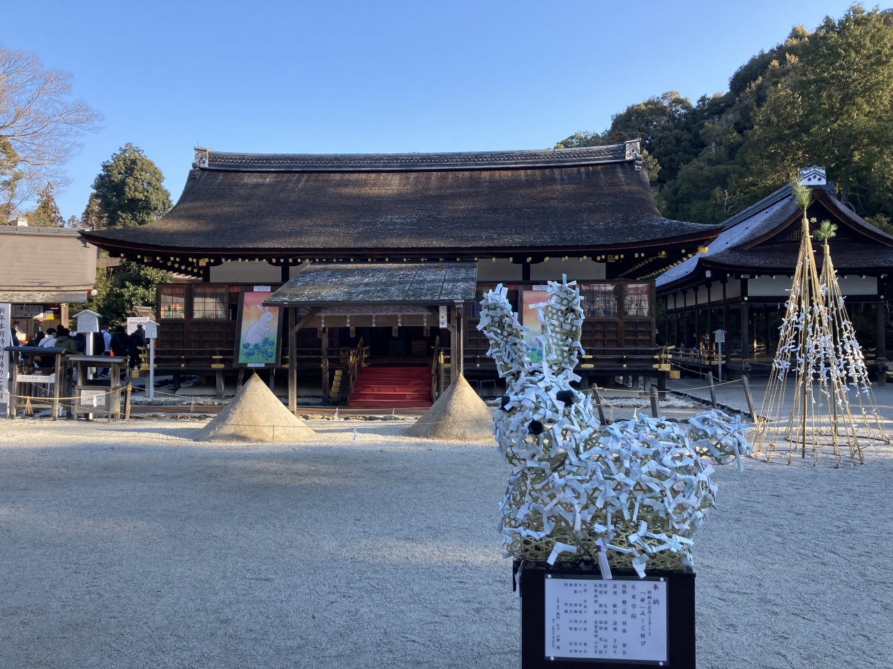 二の鳥居をくぐった後、細殿と呼ばれる拝殿の前には「立砂」という左右一対の白砂で作られた円錐形の盛砂があり、上賀茂神社独特の景観でもある。