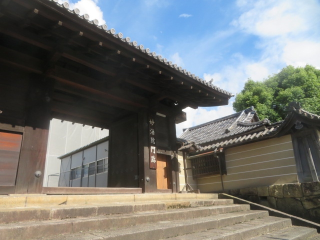 本尊は普賢菩薩です。開山は最澄です。妙法院はどでかいお寺ですが、こちらの山門には門跡という言葉が付いています。皇族・貴族の子弟が歴代住持となる別格の寺院を指して、「門跡」といいます。山門は立派ですが、境内はオーソドックスなものでした。