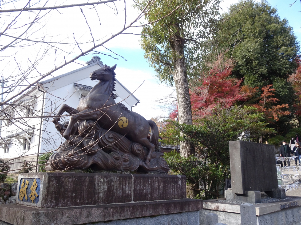 犬山城に向かう通路には奉献と書かれた高々に前足をあげる勇ましい馬の像もありました。