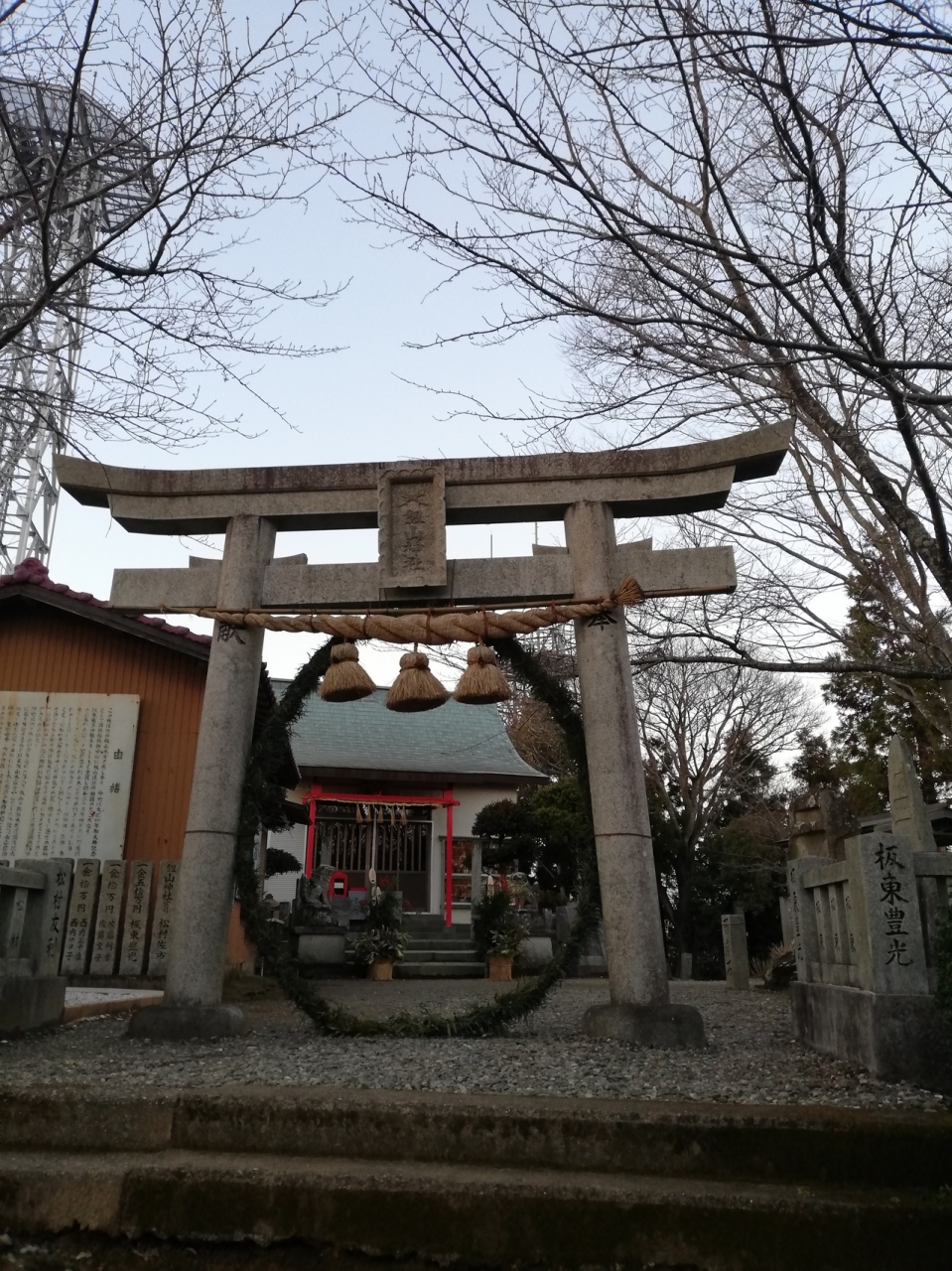 眉山の頂上を目指して徳島眉山天神社から階段と山道をひたすら登りきり、ロープウェイ乗り場の方向へ進む途中にある神社です。