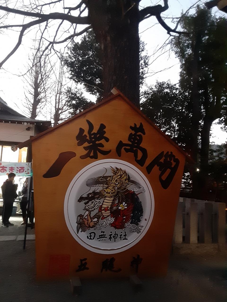 今回は初詣で田無神社を参拝。ご神木は葉が全て落ちていましたが、「一楽萬開」の五角形のお札が掲げられ存在感を示していました。