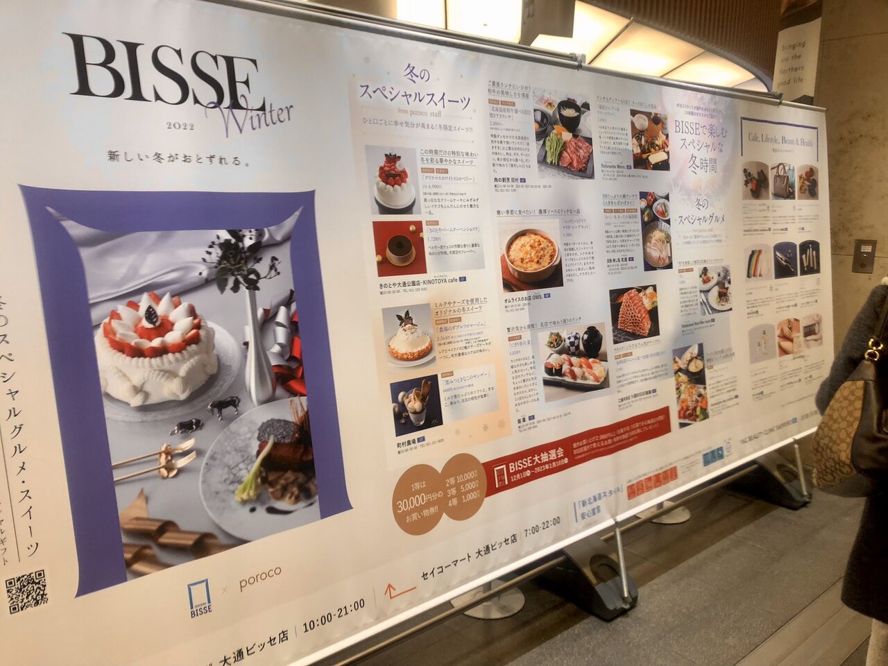 大通西3丁目7番地。北洋大通センタービルにある、ショップやレストラン街を「大通りビッセ」と呼び、この中の1階にある、札幌の洋菓子店を代表する、きのとやカフェの、スイーツバイキングに、よく姪っ子に誘われて行って来ます。すぐ目の前が、大通公園で、観光の合間の食事やカフェに便利です。