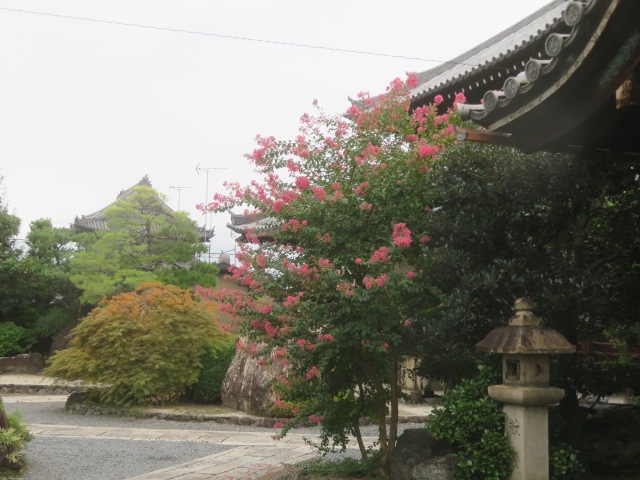 仁王門通りから少し入った場所にあります。非公開のお寺のようで、山門には木造の塀が置かれていました。この塀越しに境内の様子は見えました。本堂は屋根が大きくて、威風堂々の建築物でした。あと、境内に咲いていた季節外れの赤い花がいい雰囲気でした。