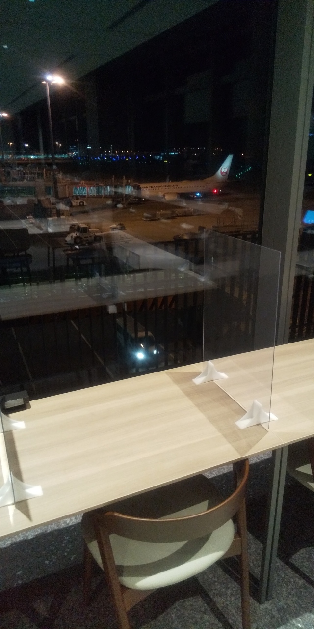かつて外が見れなかったJALのラウンジを利用していましたが、ガラス越しに飛行機が見れる広々とした開放的なラウンジになりました。