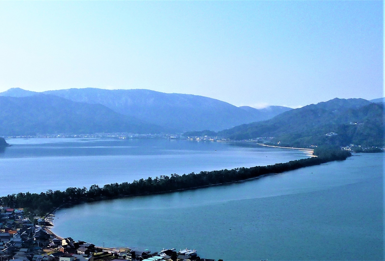 日本三景の天橋立を見渡すのは、一望できる展望所がある<傘松公園>です;[傘松]は名前をつけたものですね…天橋立;湾を通り抜ける松林の砂州ですが、名物`股のぞき`が欠かせないものです…松林=[松]が全面に`植わっている;振ってくる`は[傘]があった方が♪