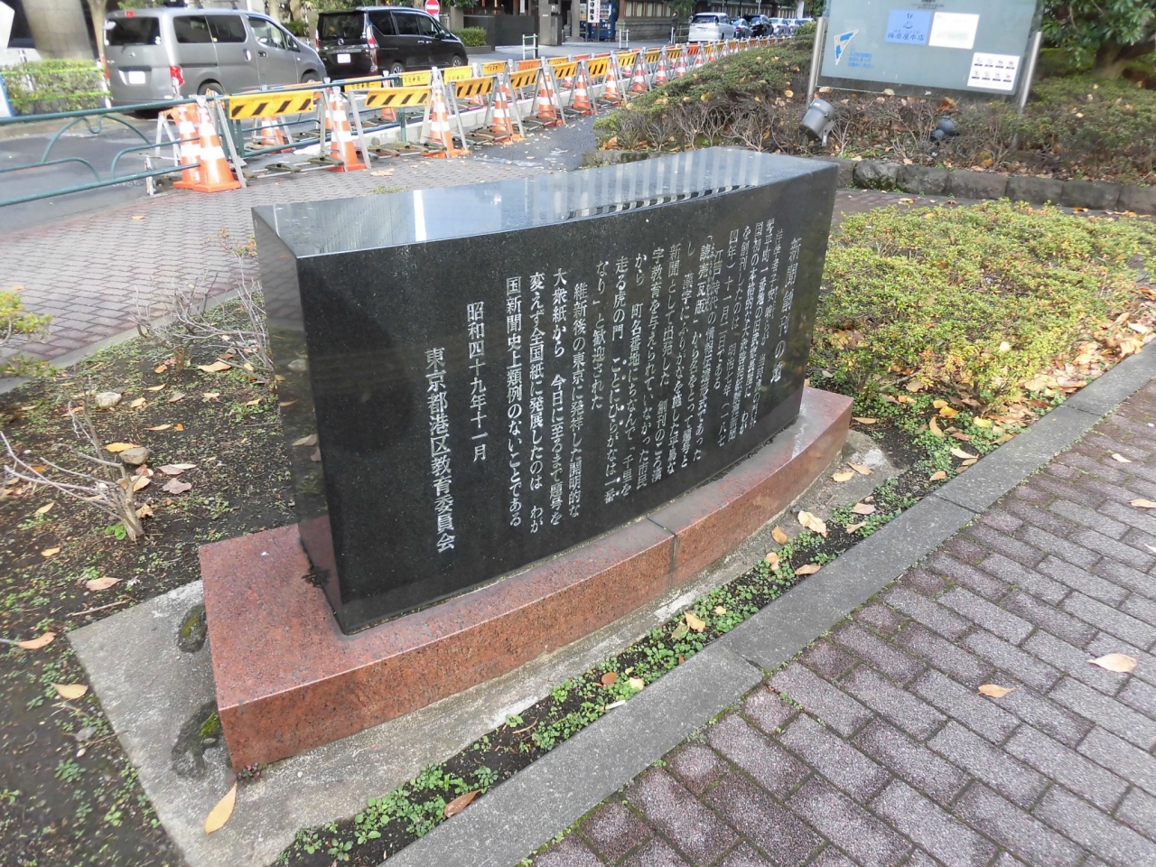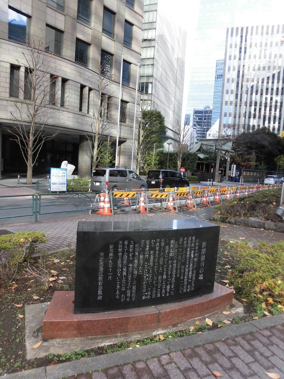 港区の虎ノ門周辺を散策していた時に、道路わきに黒い石碑が立てられていたので立ち寄ってみました。この場所が、現在の読売新聞となっている、日本の新聞創刊の地だったことを記した石碑でした。周辺が都市の再開発によって様変わりしているので、貴重な旧跡として大切にしてもらいたいと思いました。