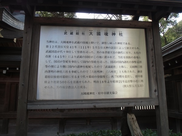 説明板によると、大國魂神を武蔵の国魂と仰いで、鎮祭し祀った神社です。