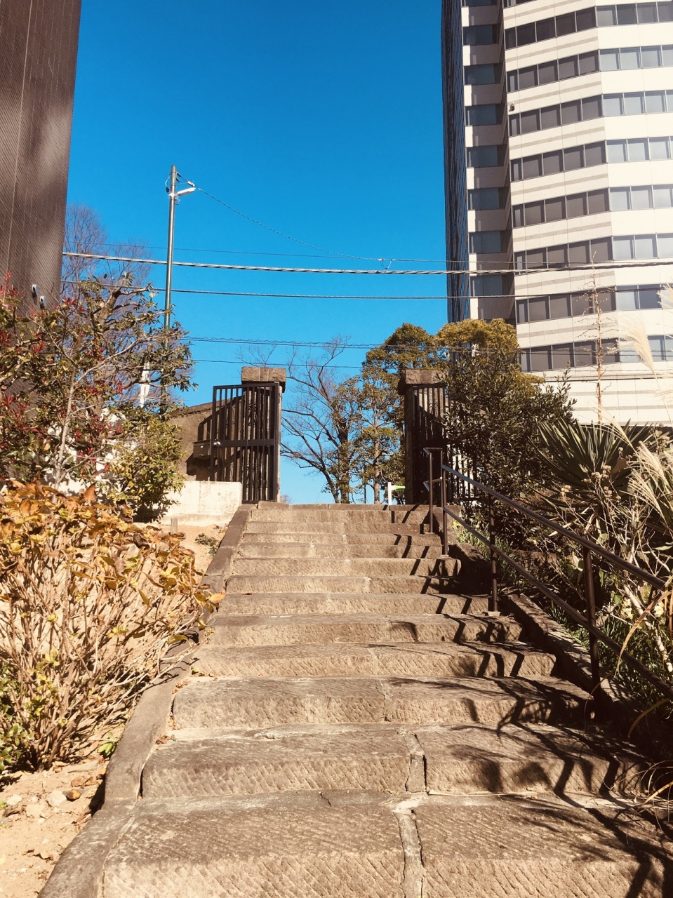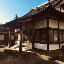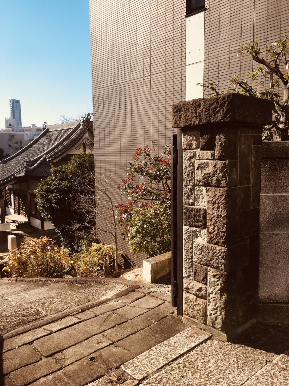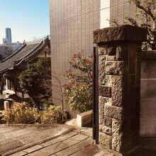 道路沿いの下に境内があり、階段を下ることが出来ます。上からは広い墓地が広がっているのが分かり、少し遠くには都内の街並みを見ることが出来ます。古い本堂がある以外は実物はなく、観光寺院ではないのでひっそりとしていました。